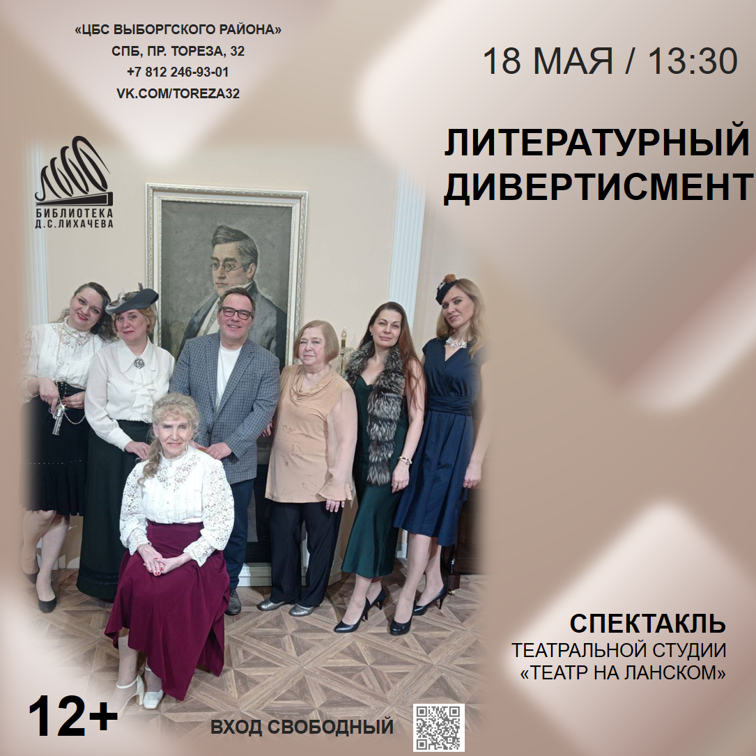 Театральная студия «Театр на Ланском» приглашает зрителей на уникальный спектакль-калейдоскоп «Литературный дивертисмент». Это необычное действо, где оживут страницы русской классической литературы в исполнении талантливых актеров студии. В программе — избранные произведения великих мастеров слова: лирика Пушкина, пронзительная проза Бунина, чеховская ирония, тонкий юмор Тэффи и глубина Кассиля.